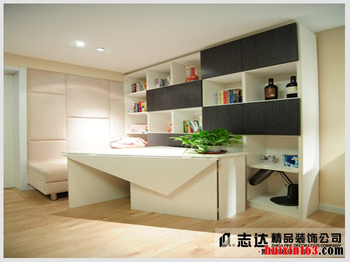 本套房屋设计的理念比较符合现代社会上年轻人的想法,独立的空间,不受拘束可以根据自己的喜好进行装点,本套房屋的玄关设计就非常的新颖,打破传统的布局,使用了一面墙的格柜做装饰,不仅可以起到一定的装饰效果,更为房屋增加了一定的收纳空间,是非常使用的设计,在往里走便是客厅,客厅中的主色调是以米黄色为主,墙壁上的墙漆与地面上的原木地板形成了一种色彩呼应,整体搭配效果,可以带给人们一种无限的舒适感,墙壁上的石膏板吊顶没有多余繁复的装饰更显时尚与大气,一侧墙壁上黑白相间的酒柜更显脱俗,下方设计了一张折叠餐桌,可以为客厅节省出一部分空间,也是现代装饰的一种设计方式,深受年轻人喜欢。
